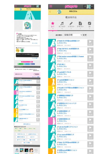 画像はピアプロのマイページ。