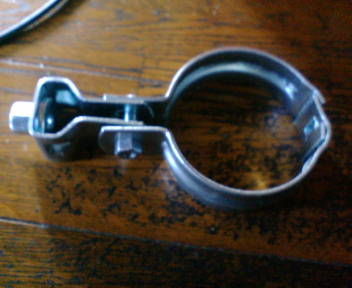上図の金具をミラーに固定し、リングの中に空き缶。その中に携帯。
